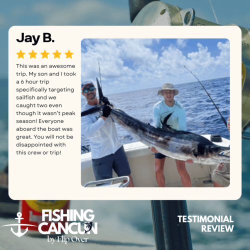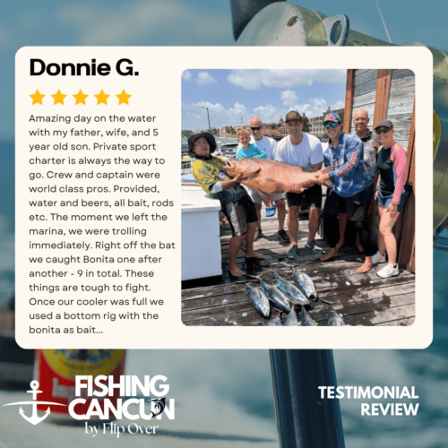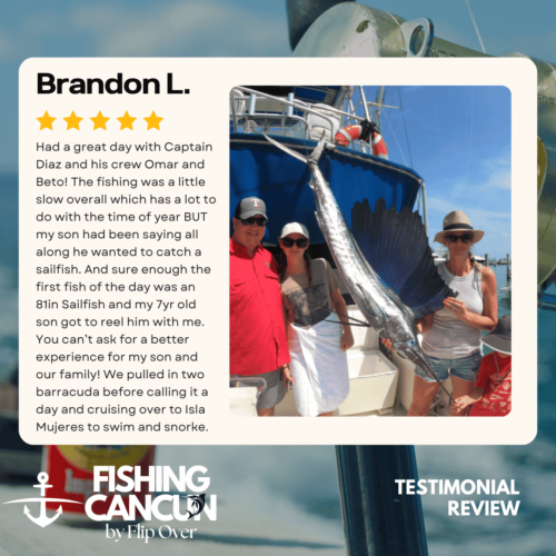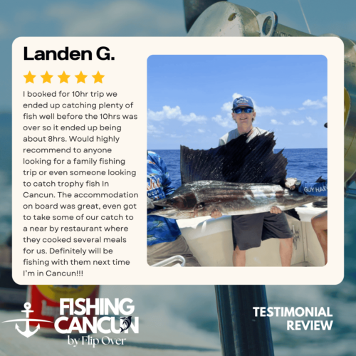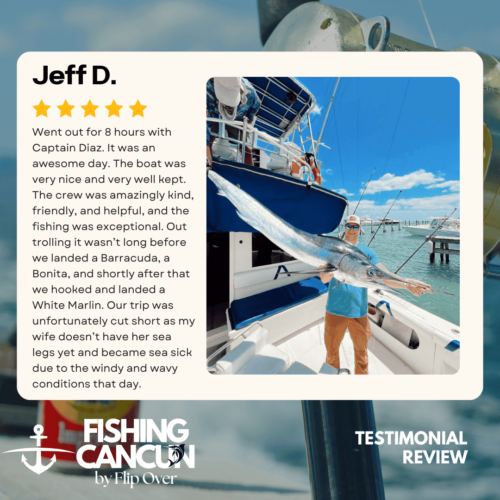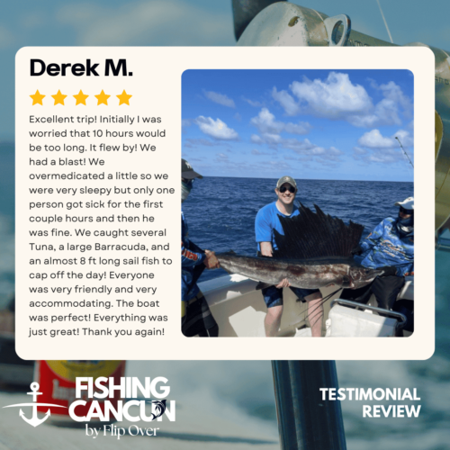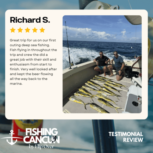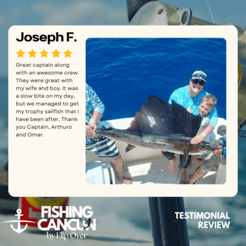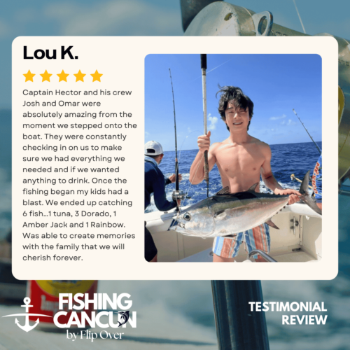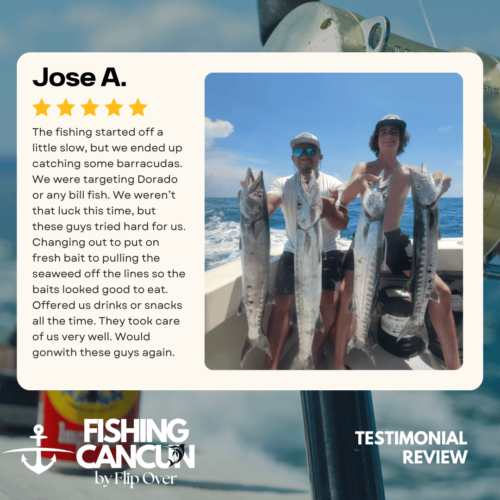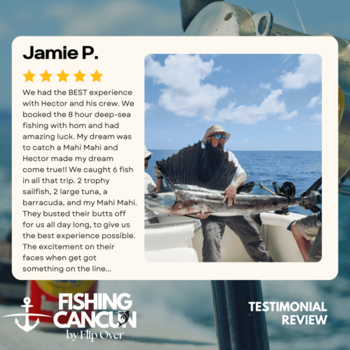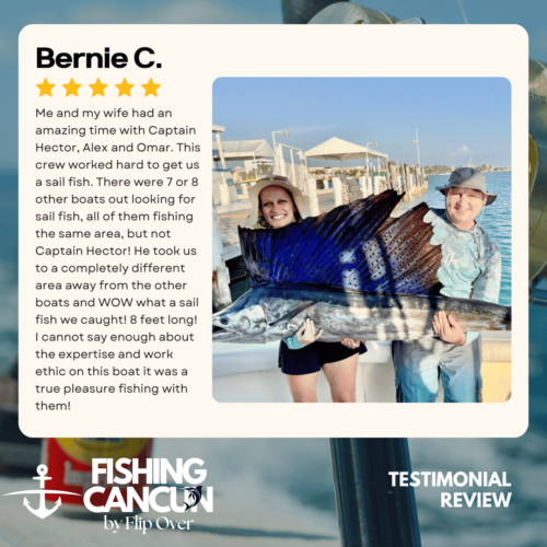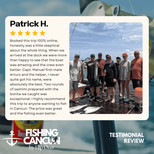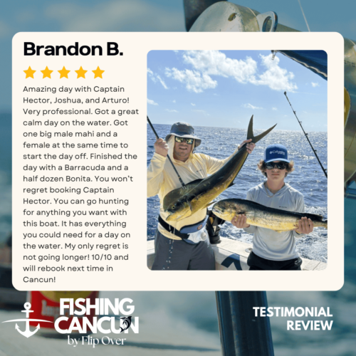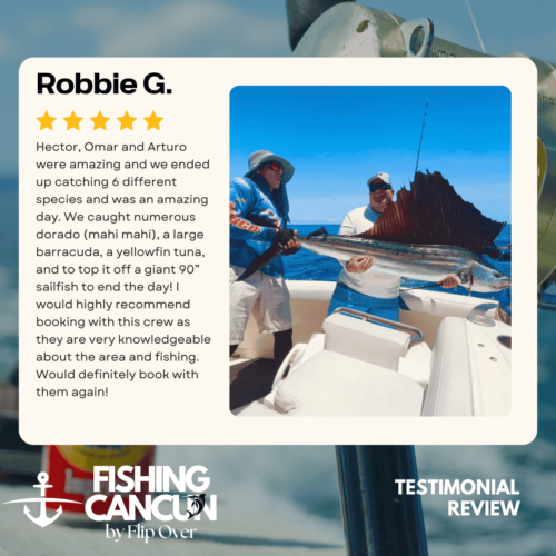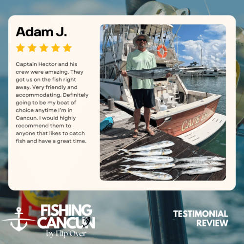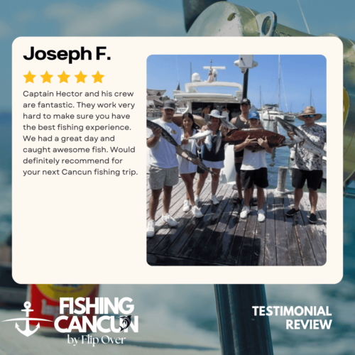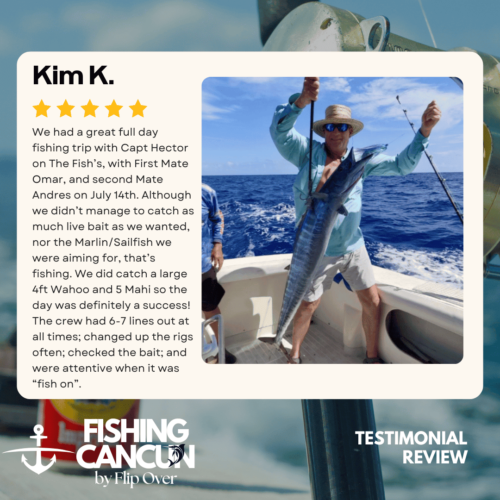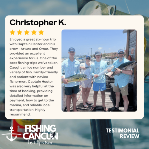 GT MitchellTrustindex verifies that the original source of the review is Google. One of the best offshore fishing trips ever! Captain, Mate's and Boat top notch! I would recommend the 8hr+ trip as it's more time on the water increasing odds of landing that fish of your Dreams. Book this Charter! Thank you, Guy MitchellPosted on Joe FilippettiTrustindex verifies that the original source of the review is Google. Captain Hector and his crew are fantastic! They work very hard to make sure you have the best fishing experience. We had a great day and caught some awesome fish including Sailfish, Grouper, Bonito, Tuna, and Barracuda. Would definitely recommend for your next Cancun fishing trip.Posted on Robbie GurrTrustindex verifies that the original source of the review is Google. Would highly recommend fishing with Hector, Omar, and Arturo. Great crew who will do all they can to get you on the fish. We had an amazing day, catching numerous Dorado, a yellowfin tuna, a barracuda, a bonito and a huge sailfish! Will definitely book with them again when we come to Cancun again!Posted on andy morinTrustindex verifies that the original source of the review is Google. Amazing team and experiencePosted on Revecca KuznetsovTrustindex verifies that the original source of the review is Google. Amazing amazing experience!! We caught a super large barracuda and a trophy Sale fish they were are turning into a trophy to mount! 10/10 recommendPosted on Marine VetTrustindex verifies that the original source of the review is Google. On May 13,14 and 16, 2022 We once again hired our favorite Captain and crew for 3, 10 hour days of "Bill Fishing" and again they did not disappoint! They picked us up and returned us @ the resort pier. Day one seemed to be a "warm up" day where my wife caught her personnel best Ahi Tuna (Yellowfin) and several Mahi which we brought back to the resort for our dinning. On day 2 we fished a 500 ft ledge just a few miles off the Cancun beach where we found an abundance of sea life and we knew this was the spot. In short order we were hooked up with more Ahi and Mahi, then it happened, White Marlin crashed the shotgun line and the fight was on. We got it to the boat in about 25 minutes grabbed a quick photo and released it unharmed. Day 3, was a little more exciting as a Blue Marlin came into our bait spread in search of a meal. It finally decided on the left rigger bait as the Omar dropped the bait back and fed it to him, "Fights On" This fish was no joke in comparison to its cousin the White Marlin. It put on a GREAT aerial display and just would not give up even after having the 20 foot leader on the reel 16 times and backing down on it 3 times. Finally after 65 minutes of give and take, it just about fought itself to death, we were able to get it onboard for a photo shot and then return it to the Sea where we spent 10 minutes pulling it by hand to keep water rushing over its gills to revive it which was accomplished and it swam away with nothing more than it's feelings hurt. I spent the next day eating Tylenol and hanging around the pool and A/C. We will always choose "Fish's" for our blue water adventure while in Cancun!Posted on Dean JohnstonTrustindex verifies that the original source of the review is Google. This is a high-quality sport-fishing charter near Cancun! The initial communication with Arturo to get information and book the trip was responsive and easy. I booked an 8-hour trip targeting sailfish, wahoo, mahi, etc. The boat (35ft Bertram I believe) is clean and comfortable. The shade over the "sitting area" was really nice, as sitting inside wasn't an option because of the rough seas. The fishing gear was ok, but worked fine all day. The crew - Arturo and Ohmar worked REALLY hard ALL day as we dealt with VERY rough seas while trolling. On the troll we did manage to catch a very nice wahoo, a barracuda and ton of small bonito. Thankfully the seas eventually calmed down and the bonito ended up being bait for some bottom-fishing we tried late in the day. We did catch few fat triggers and a snapper off the bottom. Overall I do recommend Fish's and will book them again in the future.Posted on Craig NicholsTrustindex verifies that the original source of the review is Google. Excellent people to fish with! The boat was very clean and very comfortable. My family has fished most of our lives and we’ve taken many fishing trips on vacation. This trip was different than any we have ever experienced! We caught fish that we had no idea we could have ever catch! We caught Bonita, tuna, grouper, and sailfish. Best fishing experience we have ever had! We were asked prior to getting on the boat a little bit about ourselves and we let them know that we were all experienced fishers. With the information we gave them, when a fish was on, they handed us the pole and cheered for us! They were very entertaining and accommodating! Thanks for taking care of my family and giving that experience! Hector, Arturo, and Omar, my family thanks you!Posted on Google rating score: 5.0 of 5,